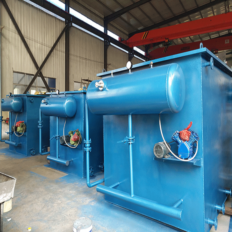 內(nèi)設(shè)機(jī)械攪拌器1臺(tái),刮渣機(jī)1臺(tái),溶氣釋放器10個(gè)(DN25),污水在混合反應(yīng)器內(nèi)與混凝劑充分混合反應(yīng)后,廢水中細(xì)小的懸浮雜質(zhì)逐漸形成較大絮體,進(jìn)入氣浮池。