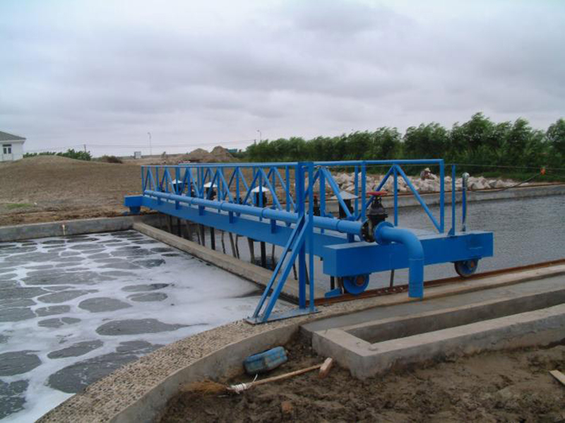 吸泥系統(tǒng):采用四臺(tái)潛污泵作為吸泥動(dòng)力,裝在行車平臺(tái)上,與排泥管路相連。行車沿池長方向運(yùn)行時(shí),潛